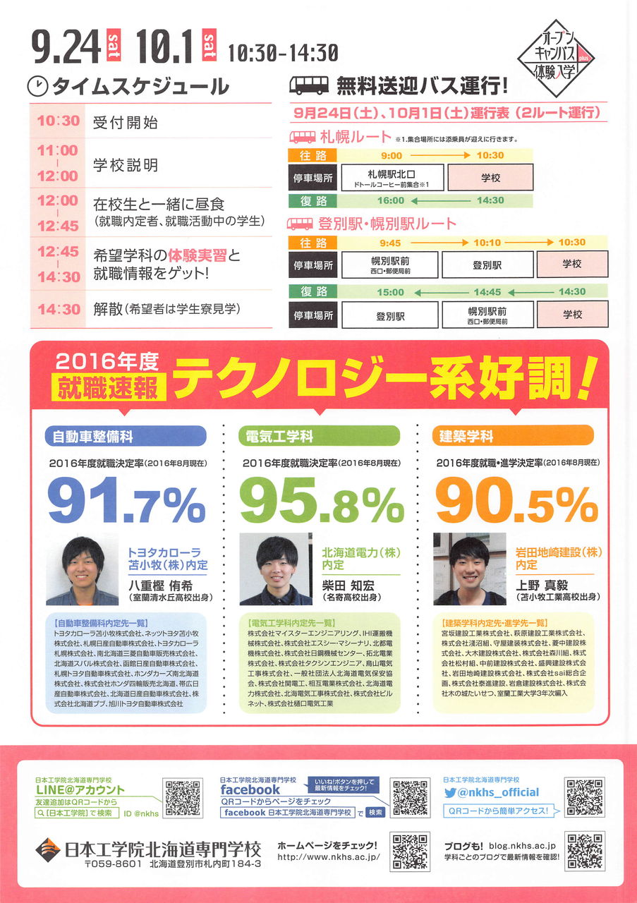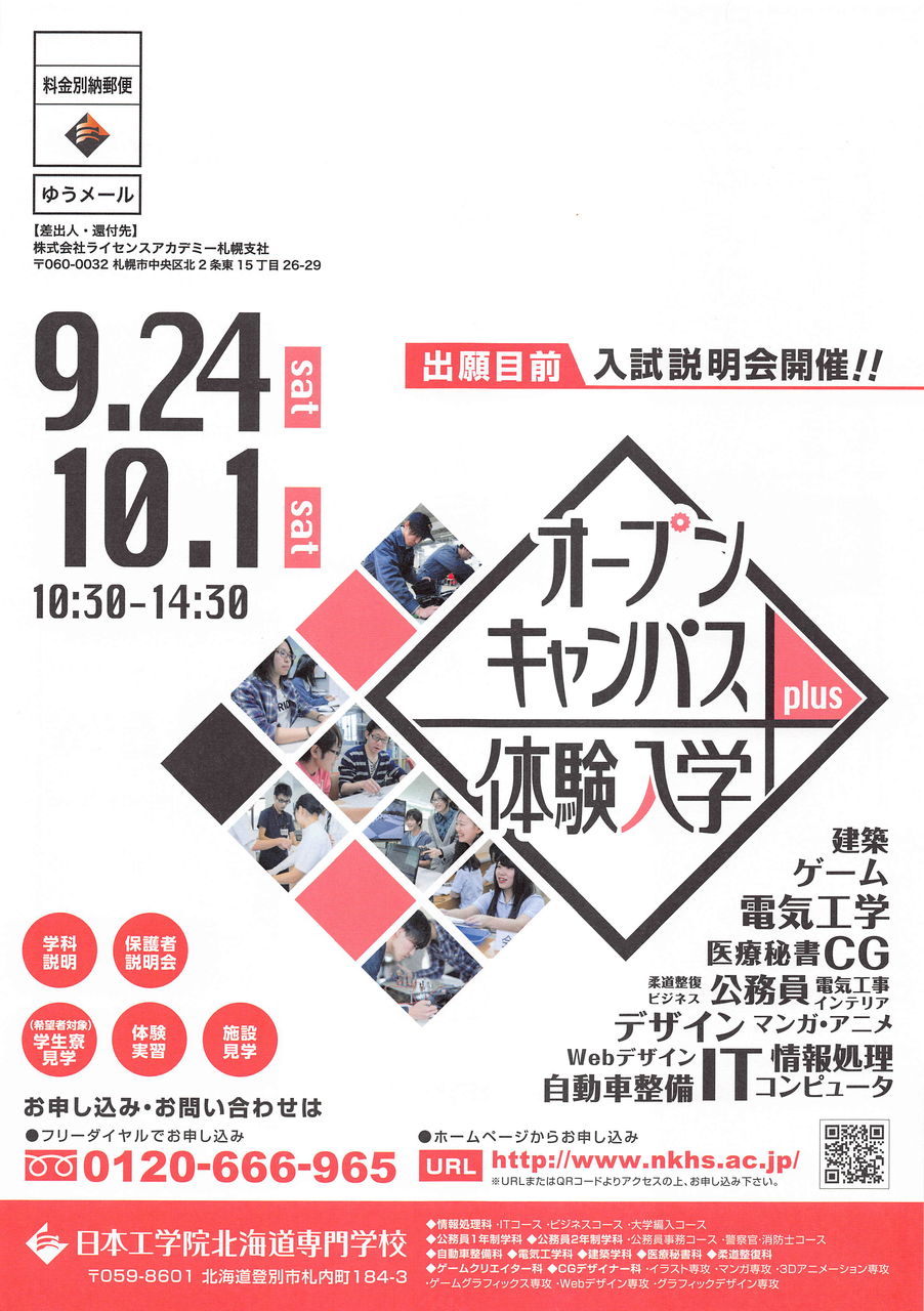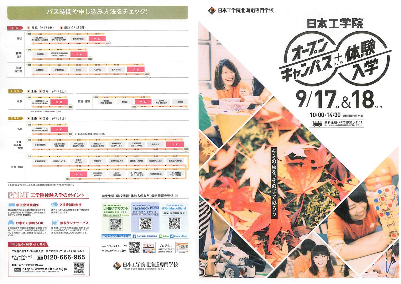 9月は17、18、24日とオープンキャンパス&体験入学が行われますよ